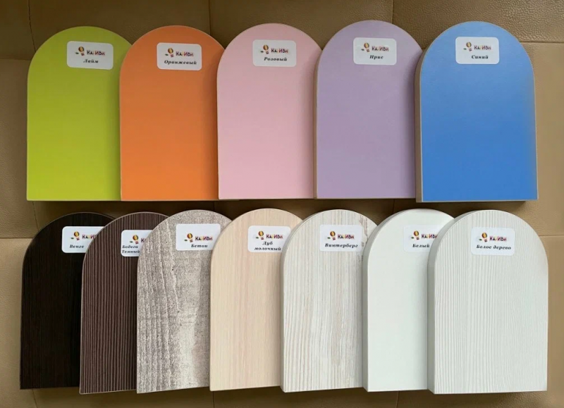 Цвет фасадов: Розовый, Оранжевый, Голубой, Лайм, Ирис, Винтерберг, Ясень Анкор темный, Дуб Молочный, Дерево белое, Лазурь