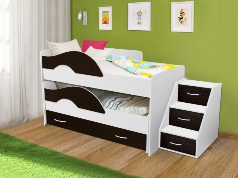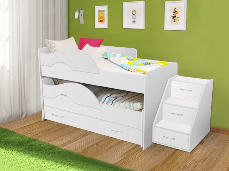 Главная / Каталог / Детская мебель / Кровати 2х ярусные для детей и подростков / Кровать выкатная Матрешка с лесенкой и ящиком