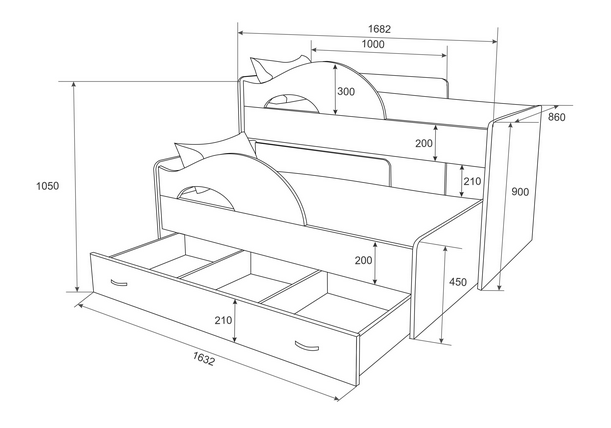 Матрасы 800*1600 и 800*1650 приобретаются отдельно.