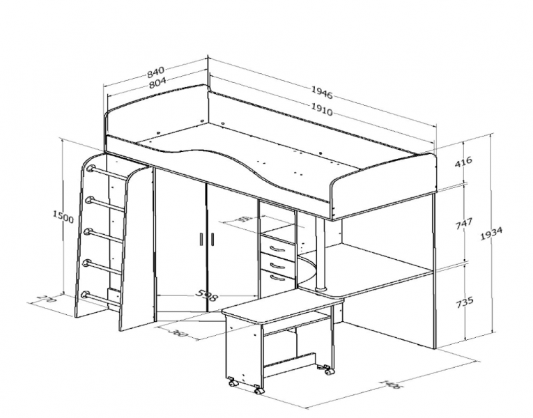 Размеры (Д.Г.В.): 1930*1100/1440*1950