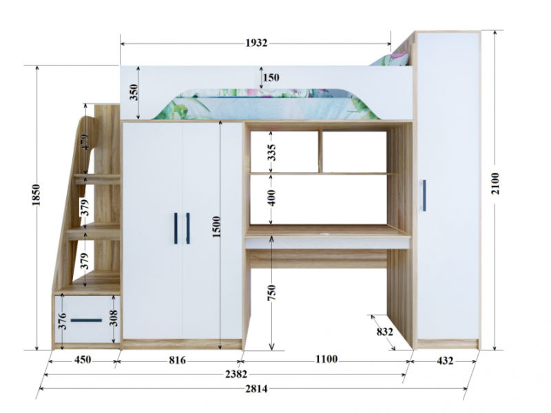Кровать-чердак Тея с пеналом - Мебель | Мебельный | Интернет магазин мебели | Екатеринбург