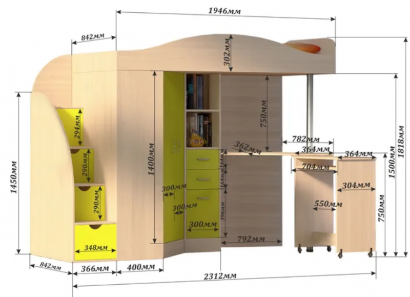 Понятие "детская мебель" включает в себя обширный перечень предметов, начиная от обычных и двухъярусных кроватей, рабочих уголков, шкафов и стульев, и заканчивая готовыми комплектами из нескольких элементов.