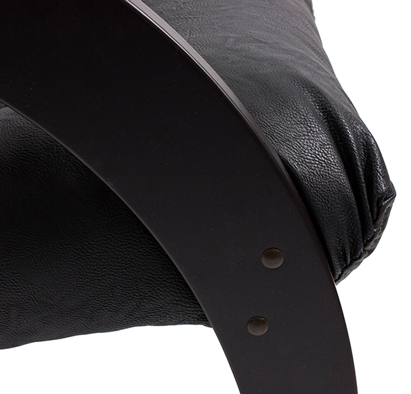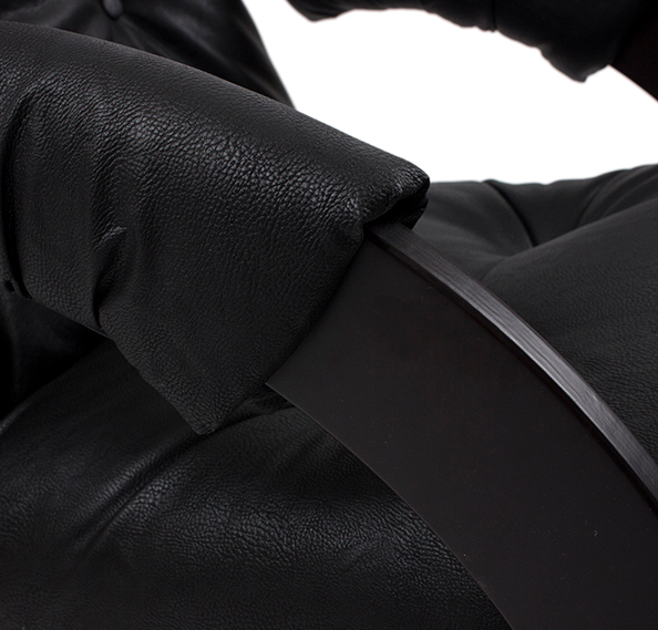 Элегантное кресло для отдыха из дерева и экокожи, которое впишется в любой интерьер. Может также комплектоваться пуфиком для ног. Благодаря тонким и стильным подлокотникам кресло не занимает много места, сохраняя при этом значительную ширину сидения.