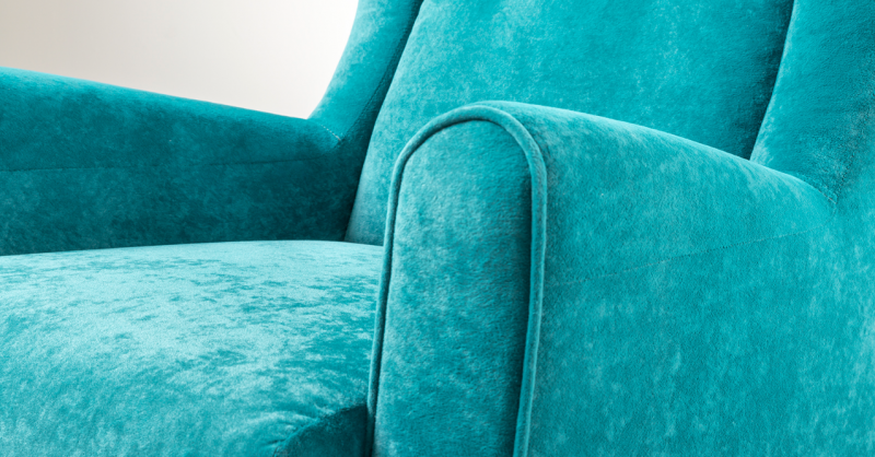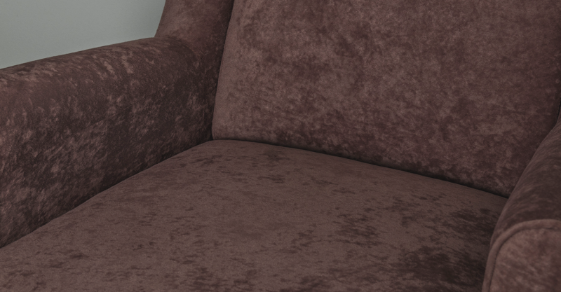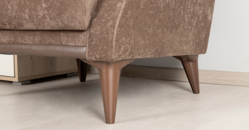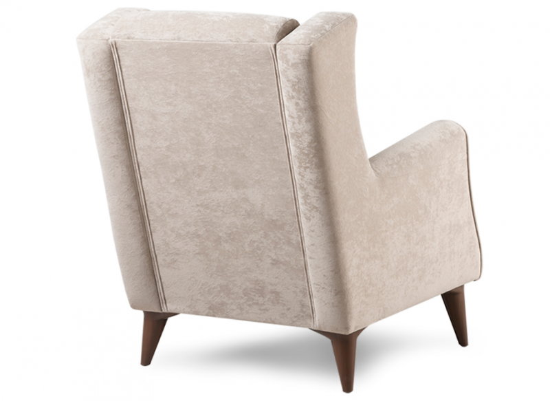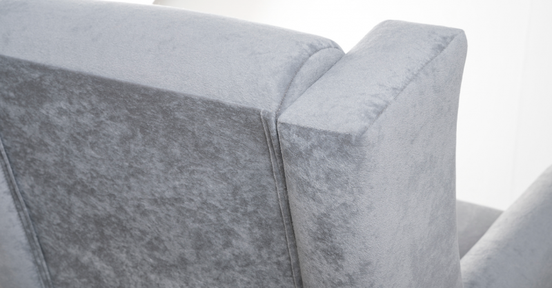 Декоративный кант из основной ткани по переднему торцу подлокотника; Утяжка спинки на 2 декоративные пуговицы из основного материала; Декоративный элемент царги из материала-компаньона.