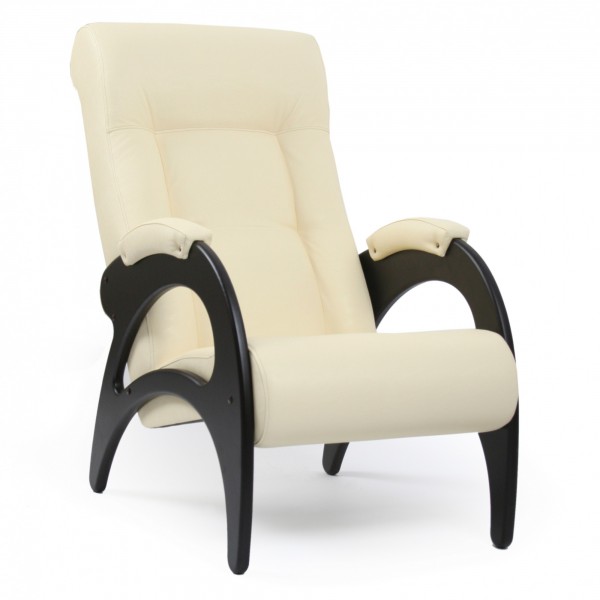 Элегантное кресло для отдыха из дерева и экокожи, которое впишется в любой интерьер. Может также комплектоваться пуфиком для ног. Благодаря тонким и стильным подлокотникам кресло не занимает много места, сохраняя при этом значительную ширину сидения.