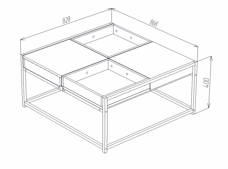 Столешница состоит из четырех элементов каждый из которых независим, при желании их можно перевернуть и получить нишу для хранения в каждом