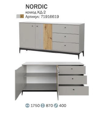 Главная / Каталог / Комоды / Комод Нордик КД-2 на 1750 с доводчиками