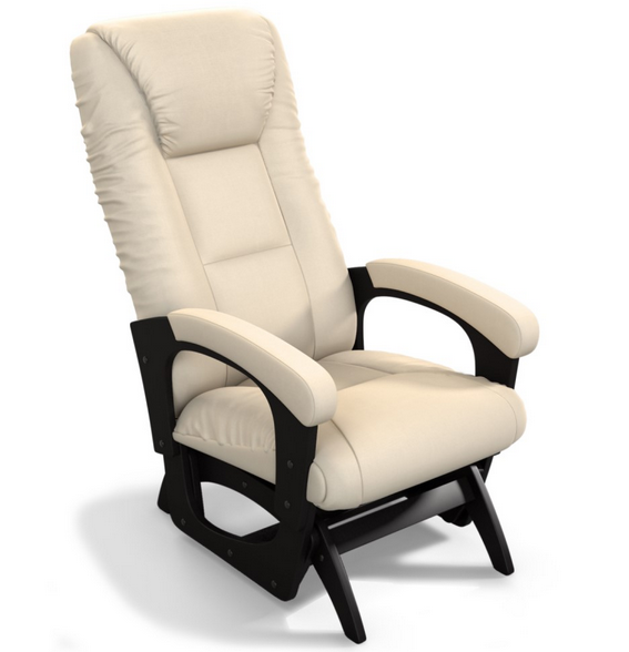 Для комфортного отдыха имеет маятниковый механизм глайдер, который выполняет классическую функцию покачивания, при этом она не проминает напольное покрытие. Кресло обтянуто мебельной тканью или искусственной кожей, каркас-дерево, боковины выполнены в виде криволинейных деталей, образующих ножки-опоры, материал боковины фанера. На боковинах имеются мягкие подлокотники.
