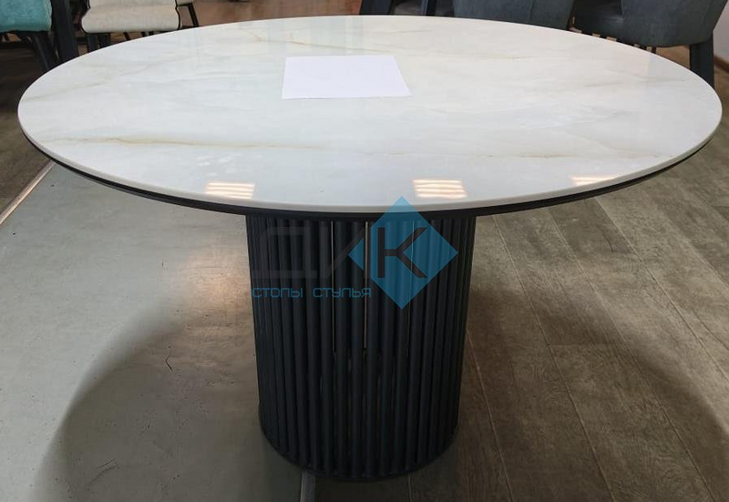 Столешница выполнена из: керамика (5,6 мм) + МДФ в пленке. Рама металлическая, крашенная. Подстолье: опоры металлические.