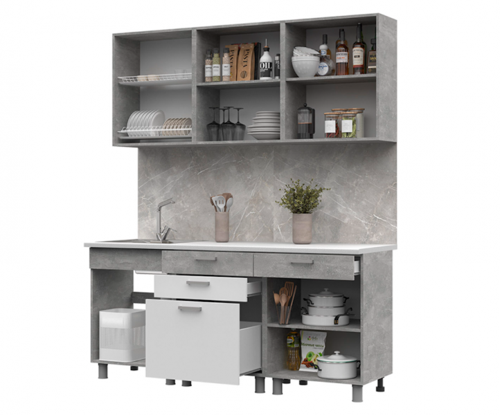 5)Верхний модуль 600 мм комбинация из открытых и закрытых полок.