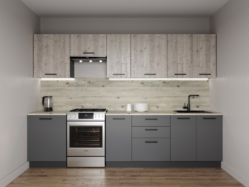 Фасады верхних модулей со свесом 12 мм дают возможность использовать без установки ручек.