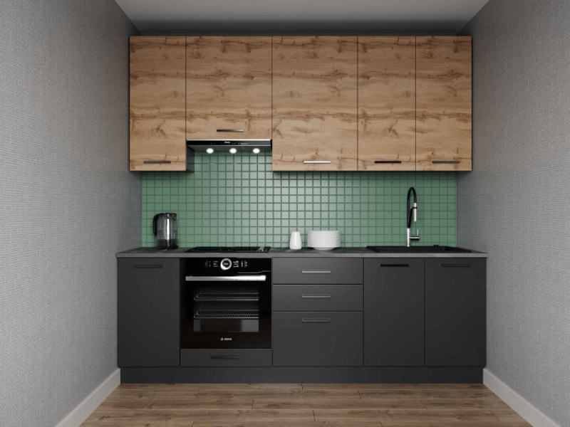 Фасады верхних модулей со свесом 12 мм дают возможность использовать без установки ручек.