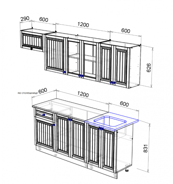 Накладная мойка на 600 и сушка приобретаются отдельно.