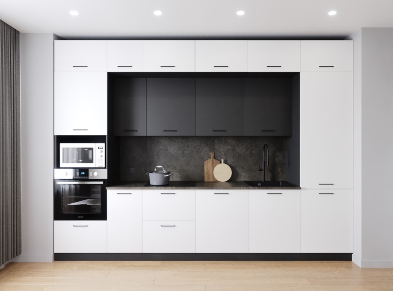 Фасады верхних модулей со свесом 12 мм дают возможность использовать без установки ручек.
