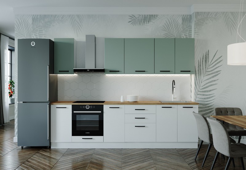 Фасады верхних модулей со свесом 12 мм дают возможность использовать без установки ручек.