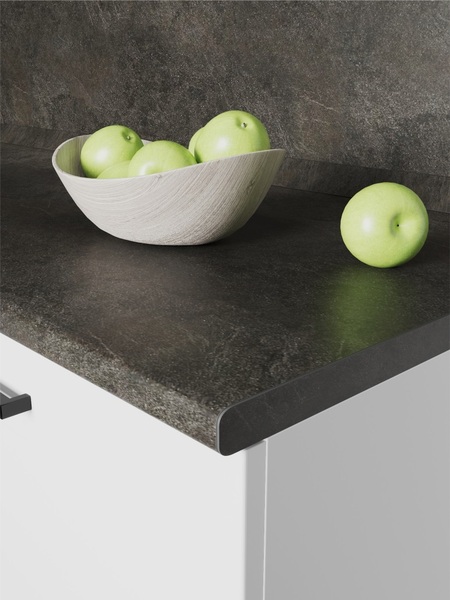 Столешницы цельные с пластиковым покрытием со скруглением по переднему краю (постформинг толщина 26/38 мм).