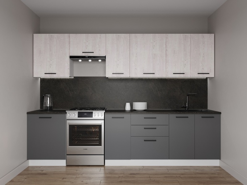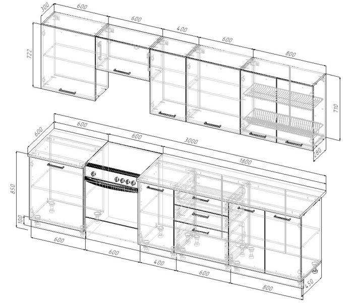 Фасады верхних модулей со свесом 12 мм дают возможность использовать без установки ручек.
