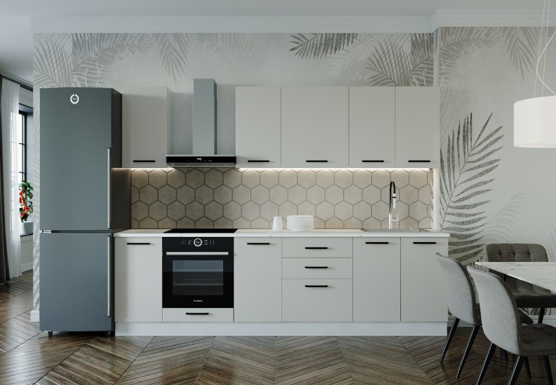 Фасады верхних модулей со свесом 12 мм дают возможность использовать без установки ручек.