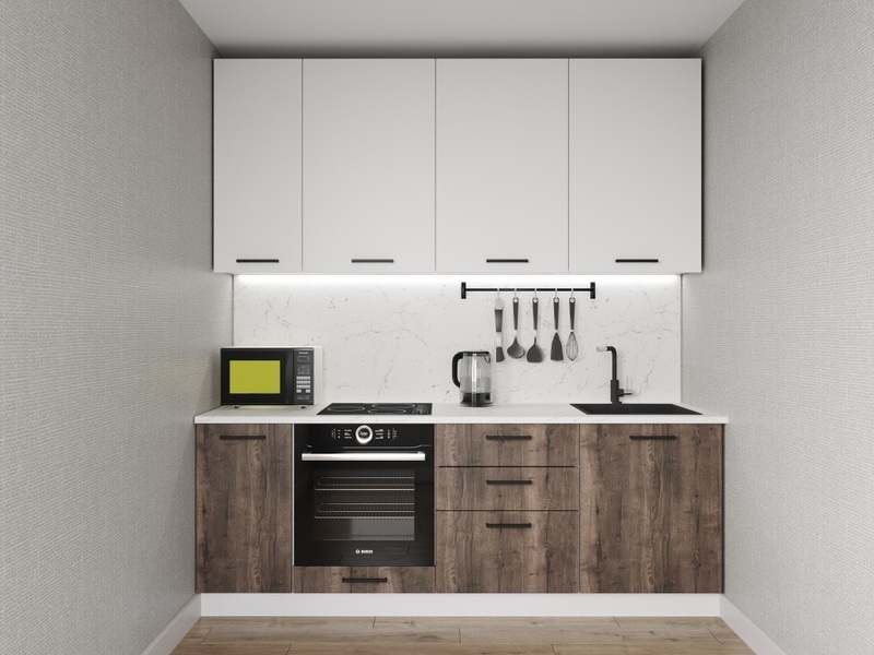 Фасады верхних модулей со свесом 12 мм дают возможность использовать без установки ручек.