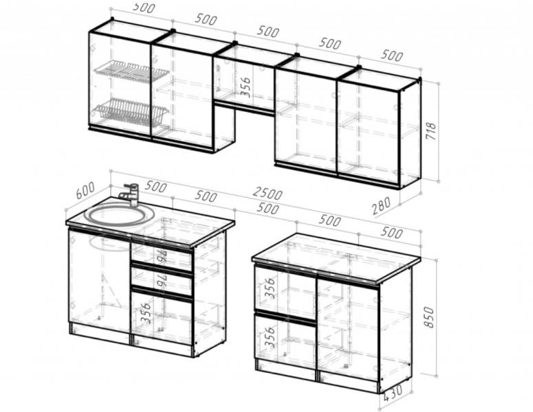 Кухня Сюита Мега на 2500 - Мебель | Мебельный | Интернет магазин мебели | Екатеринбург
