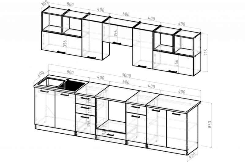 Сушка и врезная мойка приобретаются отдельно. Столешница раздельная на каждый модуль своя, есть возможность заказа цельной ОБЯЗАТЕЛЬНО сообщайте об этом менеджеру либо в коментарии к заказу