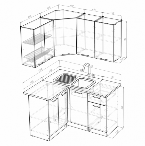 Сушка и мойка приобретаются отдельно. Фартук в комплект не входит