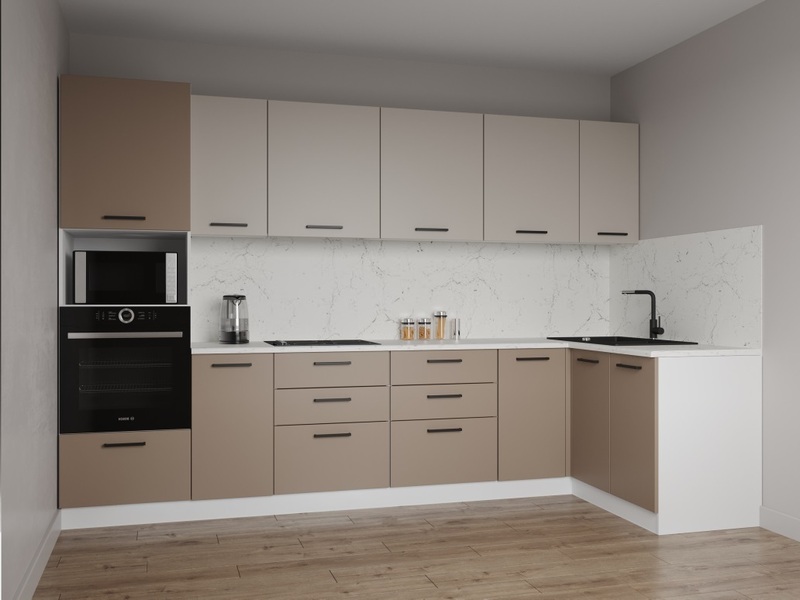 Фасады верхних модулей со свесом 12 мм дают возможность использовать без установки ручек.