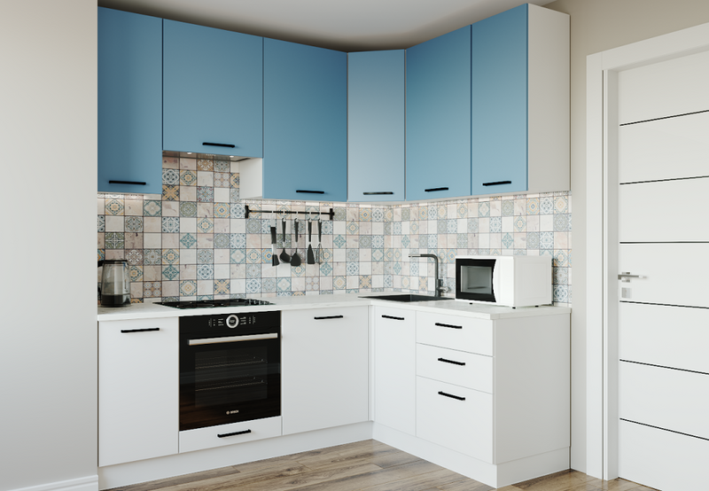 Фасады верхних модулей со свесом 12 мм дают возможность использовать без установки ручек.