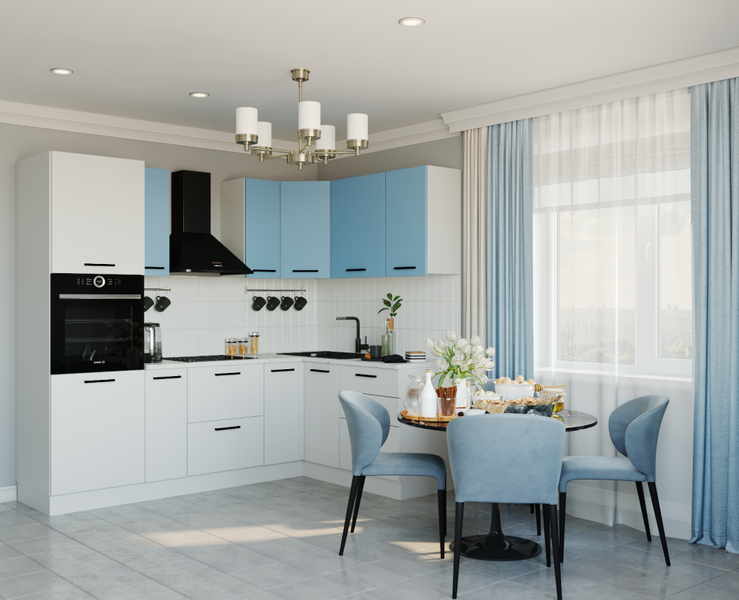 Фасады верхних модулей со свесом 12 мм дают возможность использовать без установки ручек.