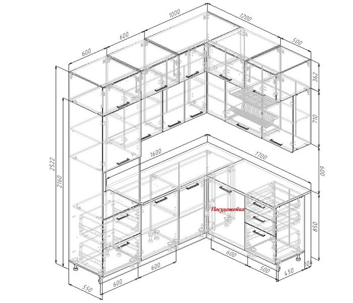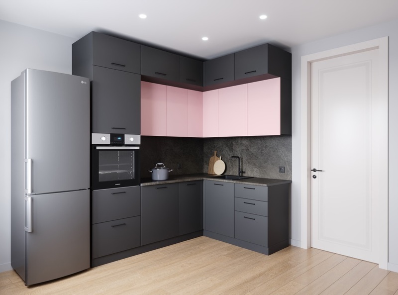 Фасады верхних модулей со свесом 12 мм дают возможность использовать без установки ручек.