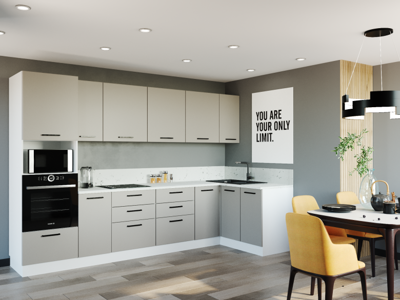 Фасады верхних модулей со свесом 12 мм дают возможность использовать без установки ручек.