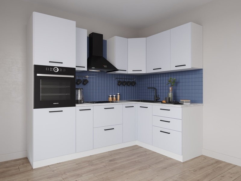 Фасады верхних модулей со свесом 12 мм дают возможность использовать без установки ручек.