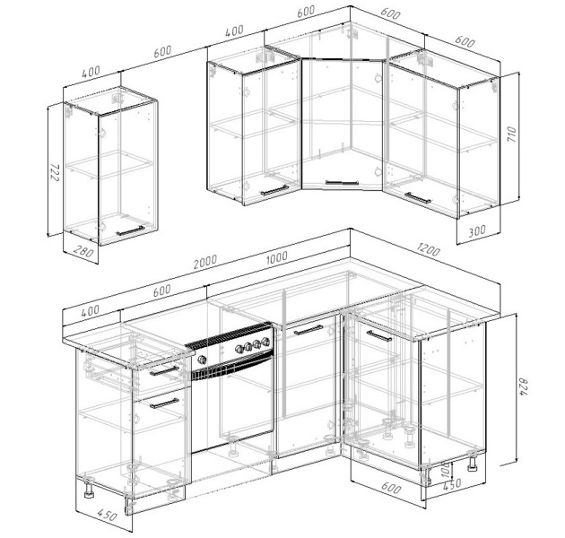 Верхние модули: Высота 720мм
