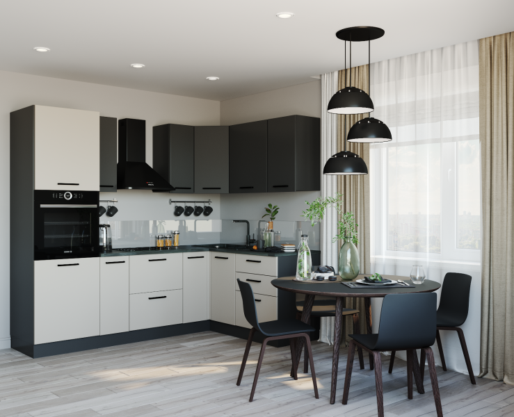 Фасады верхних модулей со свесом 12 мм дают возможность использовать без установки ручек.