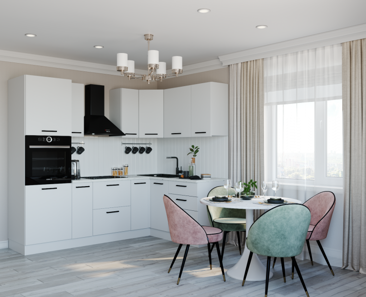 Фасады верхних модулей со свесом 12 мм дают возможность использовать без установки ручек.
