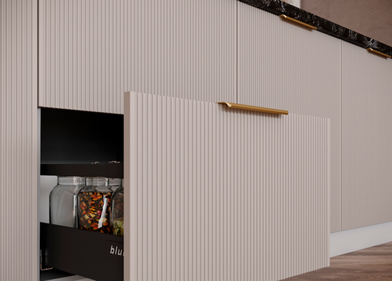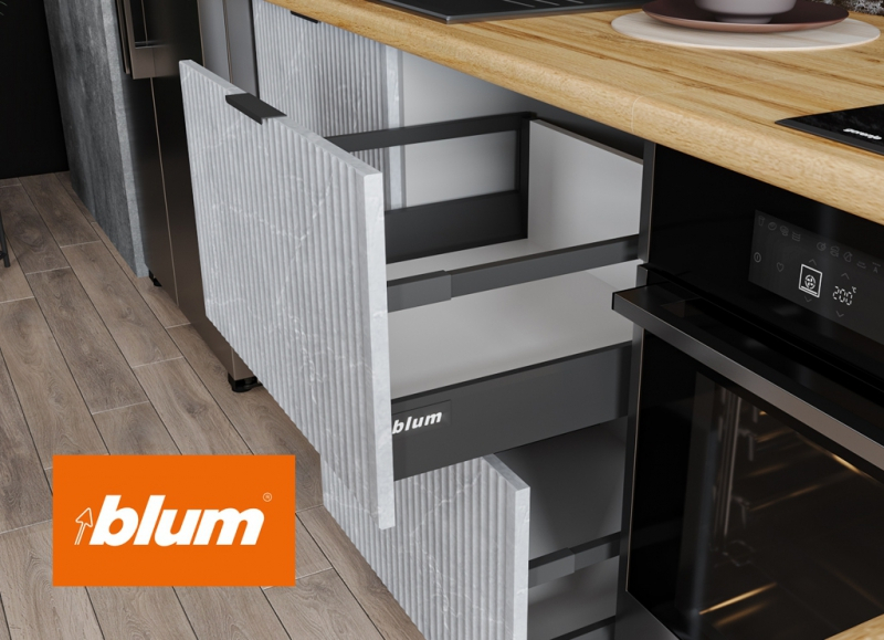 Многократно испытанные направляющие ящиков TANDEMBOX впечатляют высоким комфортом движения. Износостойкие пластмассовые валики обеспечивают плавное скольжение и динамические нагрузки 30 кг и 65 кг. Адаптивная система BLUMOTION обеспечивает мягкое и бесшумное закрывание.