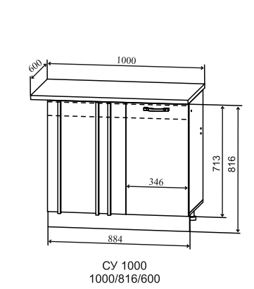 Размеры (Ш.Г.В.): 1000(по столешнице)*504*816