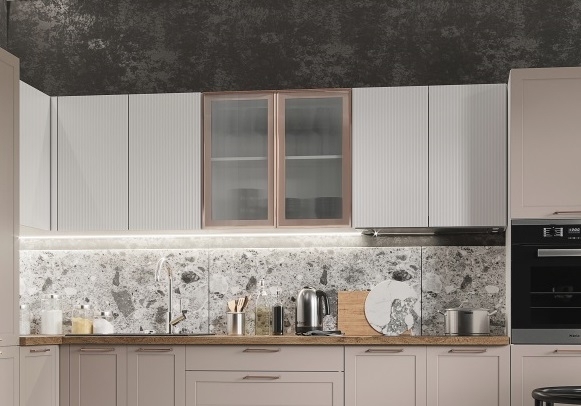 Главная / Каталог / Мебель для кухни / Модульные кухни / Кухня Стайл Леко / Кухня Стайл Леко АМВ 60 BRASS VELVET Шкаф со стеклом 600