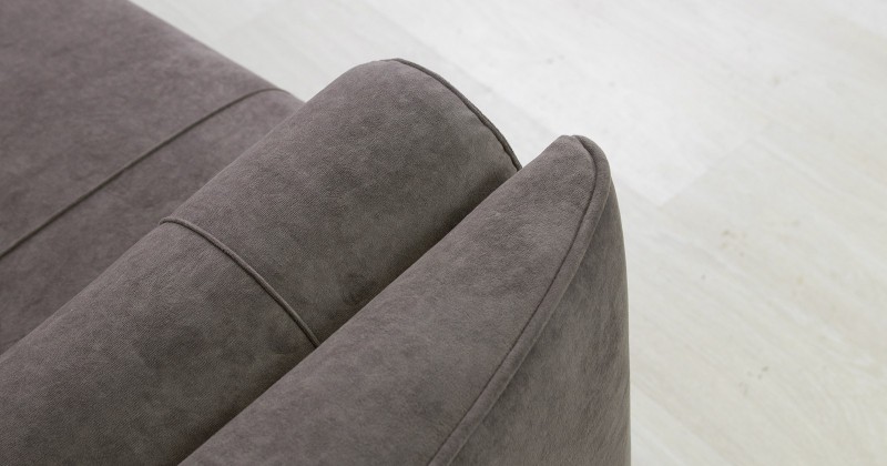 Кант на торцах приспинyых подушек, сиденья и подлокотников. Защипы на сиденье и приспинных подушках. Две декоративные подушки-валика с защипами.
