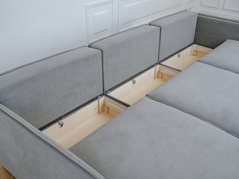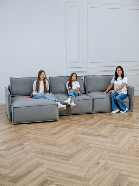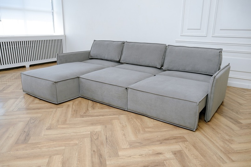 Наш угловой модульный диван-кровать -- образец стиля минимализм. Каркас дивана состоит из массива сосны и березовой фанеры. Обивка износостойкая с влагоотталкивающей пропиткой и защитой от когтей мелких животных. Механизм «Еврокнижка» трансформирует модель в двуспальную кровать и подходит для ежедневного сна.