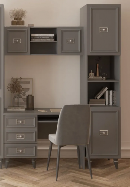 Материал фасадов: МДФ матовый Покрытие: Лаковое покрытие крашенная эмаль. Корпус: ЛДСП Петли с доводчиками. Направляющие для ящиков: Металлические полного выдвижения.