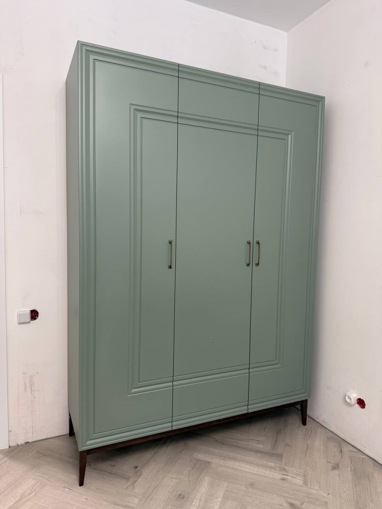 Спокойный мягкий мятный оттенок спальни "Гориция" отлично расширяет пространство, делает комнату уютной, не перегружая обстановку. Изящная фрезеровка на фасадах выглядит стильно и современно. Кровать из массива, тумбы и комоды на элегантных опорах цвета дуб коньяк, вместительные распашные шкафы для одежды - в спальный гарнитур входит все, что нужно для спокойного отдыха и рациональной организации пространства.