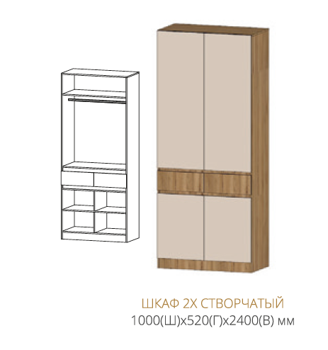 Главная / Каталог / Спальни / Спальня Ленора / Спальня Ленора Шкаф 2х створчатый