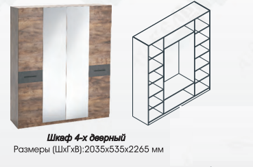 Главная / Каталог / Мебель для спальни / Спальни / Спальня Глазго / Спальня Глазго Шкаф распашной 4 двери