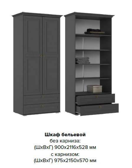 Размеры: (Ш.В.Г.) 900*2116*528, с карнизом 975*2150*570